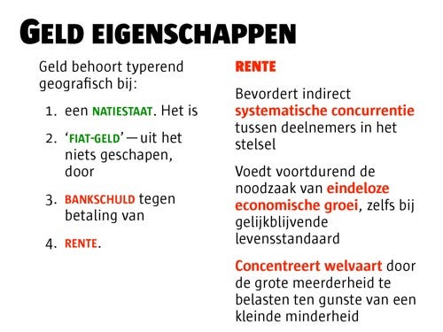 Geld is een afspraak en hetzelfde geldt voor een concept zoals rente. Robuuste geldstelsels die rente op schulden inruilen voor stroomgeld blijken die ontrafelende eigenschappen niet te hebben. In tegendeel, ze bevorderen gemeenschapszin en samenwerking juist en verleggen de focus van winst op korte termijn naar duurzaamheid op lange termijn.